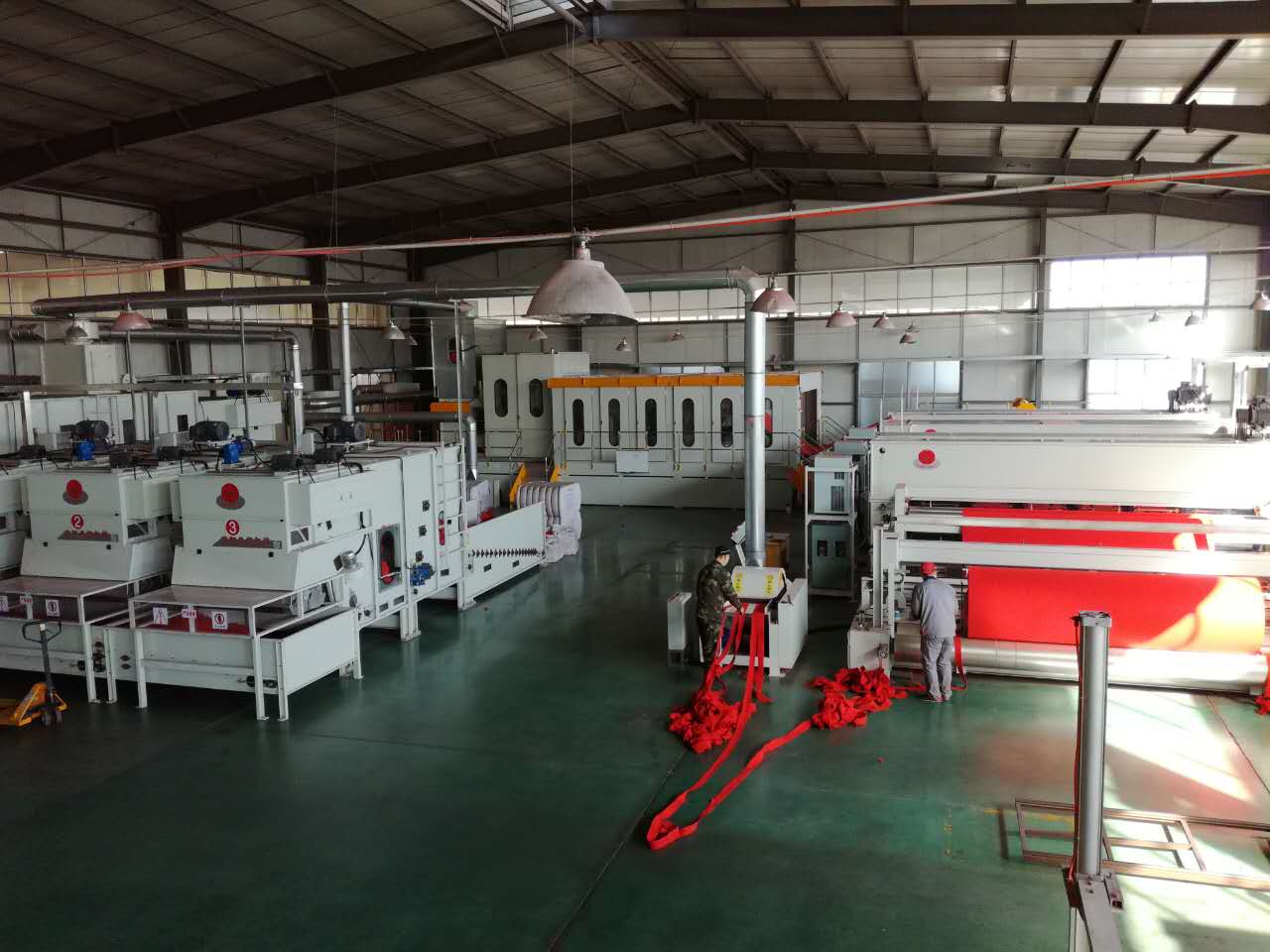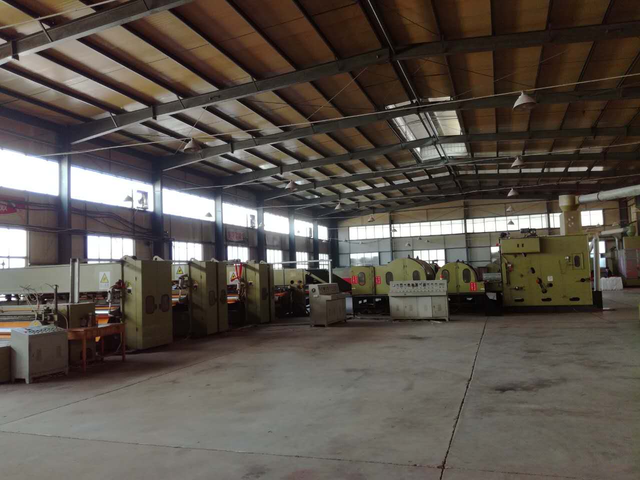 公司總投資1億余元,首期工程已完成投資3000萬元。現已建設標準廠房15000余平方米、引進多條無紡布生產線。其中,針刺無紡線4條、起絨機兩臺、電腦提花機1臺、條紋機1臺、地毯整理烘干定型線兩套。